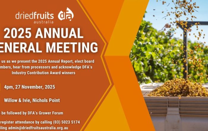 Dried Fruits Australia will host its 2025 Annual General Meeting Thursday 27 November. When: 4pm, 27 November Where: Willow & Ivie, Nichols Point Join us as we present the 2025 Annual Report, elect board members, [...]